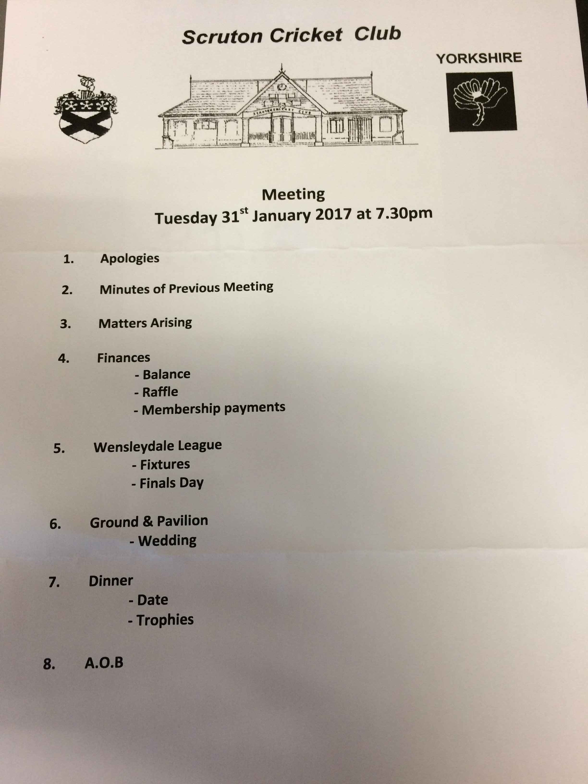 Thank you to all those who attended the AGM tonight. The main news from tonights meeting is the election of a new captain in Kev Stannard and vice captain Richard Ogle. Congratulations to them, they both live in the village which is an important factor and will do a great job.